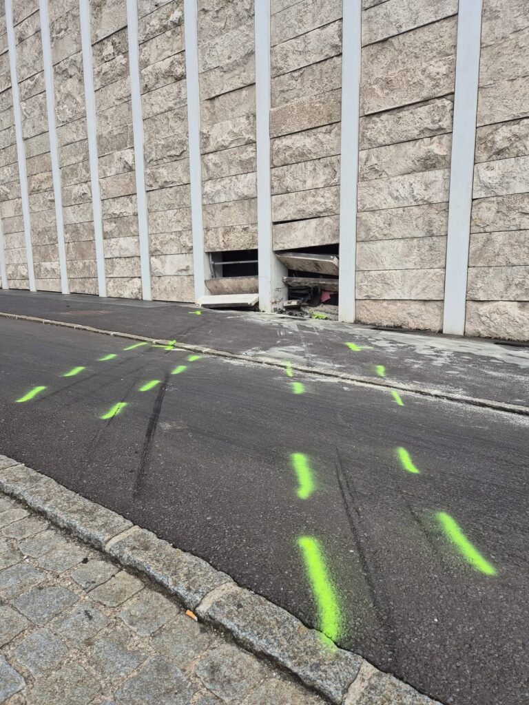 Dass bislang noch kein Passant verletzt wurde, grenzt an ein Wunder, weil sich direkt an dieser Stelle eine Bushaltestelle befindet.