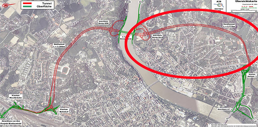 Die neue Stadtautobahn A26 endet auch nach dem Bau des Freinbergtunnels bekanntlich im Donautal, wodurch die erhoffte Entlastung für den Norden von Linz sehr begrenzt bleibt. Statt den Verkehr Richtung Urfahr am Zentrum des nördlichen Linzer Stadtteils vorbeizuführen, wird dieser weiter mitten hineingeleitet.