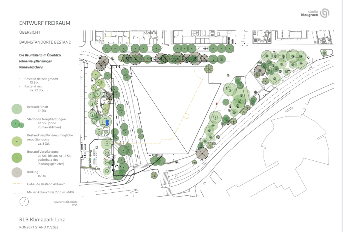 Im März hat der Gemeinderat die Änderung der Planungsgrundlagen für den RLB OÖ-Neubau beschlossen und damit die Rahmenbedingungen fixiert. „Wir haben mit Vertretern der RLB intensiv daran gearbeitet, in diesem Rahmen das Beste für den Grünraum und vor allem die Bäume zu erreichen. Das Ergebnis ist ein umfangreiches Bündel an Maßnahmen“, sagt die für Stadtgrün zuständige Klimastadträtin Eva Schobesberger.