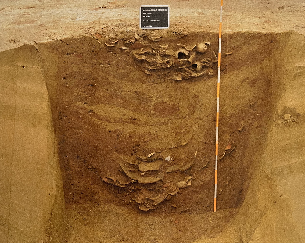 Diese unbrauchbaren Tonprodukte aus dem ausgehenden 2. Jahrhundert n.Chr. – großteils in hervorragender Qualität erhalten – wurden nun bis zu einer Tiefe von sechs Metern geborgen und in weiterer Folge archäologisch untersucht. Ersten Ergebnissen zufolge dürfte es sich um Massenware für den Haushalt handeln. Es wurden aber auch hochwertig bemalte und mit Verzierungen versehene Tonscherben gefunden.