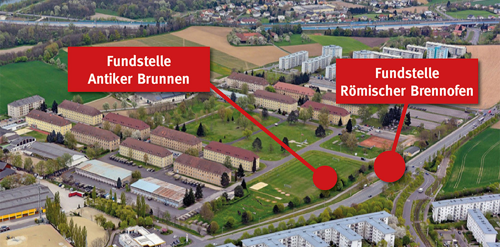 Der Raum Ebelsberg galt, was die Römerzeit betrifft, bislang eher als unauffällig. Lediglich Reste eines Römischen Töpferofens mit zwei Brennkammern wurden im Jahr 1938 beim Bau der Wehrmachtskaserne gefunden und in einer groben Skizze festgehalten. Dieser Ofen aus der Römerzeit (etwa 170 n.Chr.) befand sich bei der jetzigen Kaserneneinfahrt. Im Zuge von Grabungsarbeiten stieß man nun, gut 100 Meter weiter nordwestlich, auf einen antiken Brunnenschacht, der bis in 18 Meter Tiefe reicht – dort, wo der Lössboden endet und die Schotterschicht beginnt.