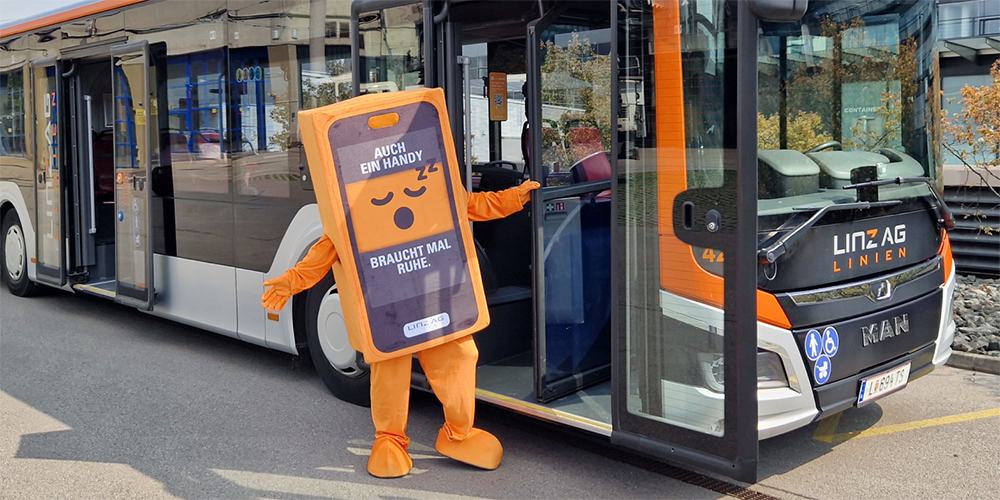 Jetzt haben die LINZ AG Linien mit der Linzer Theatergruppe Impropheten tatkräftige Verstärkung an Bord geholt, um das Thema stärker ins Rampenlicht zu rücken. Gut so, denn gefühlsmäßig hat die Kampagne noch nicht allzu viel bewirkt, es wird mehr denn je in allen möglichen Sprachen laut telefoniert, Musik gehört oder Reels ohne Kopfhörer gekuckt.