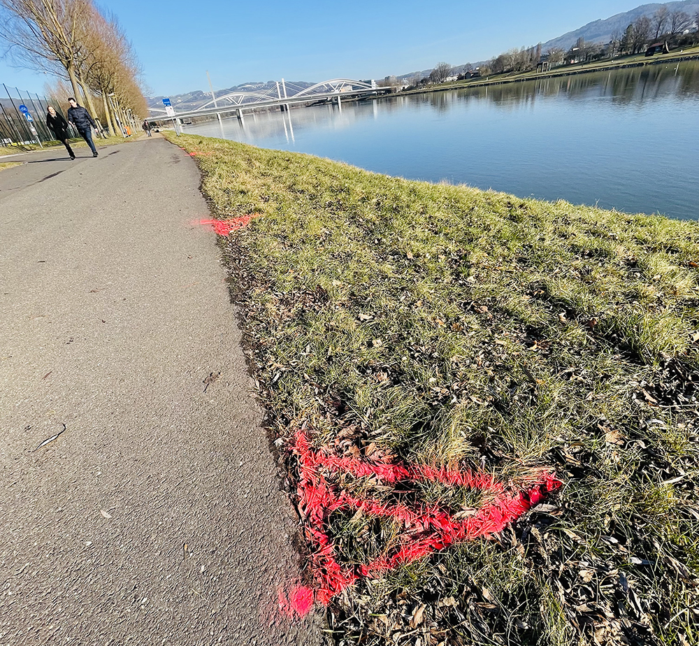 Um die 50 Kubikmeter Beton werden im Uferbereich vergossen. Hier werden in weiterer Folge Pontons befestigt, an denen die bis zu 135 Meter langen Kreuzfahrtschiffe anlegen können. Eine transparente Info über diesen massiven Eingriff in den öffentlichen Raum gab’s einmal mehr nicht.