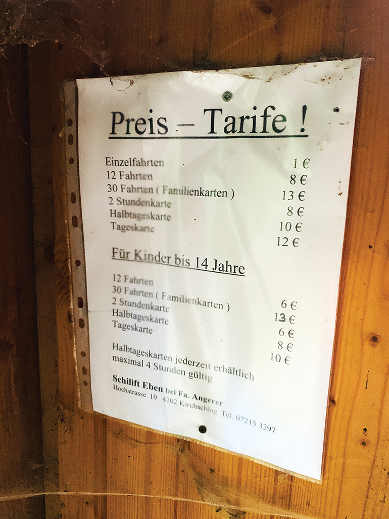 Etwas weiter nördlich, im Ortsteil Eben, steht im Wald ein zugewachsenes Liftwarthäuschen. Der nächste, allerdings nicht mehr so strenge Winter wie einst kommt bestimmt und legt seinen weißen Mantel über die stummen Zeugen der Vergangenheit.