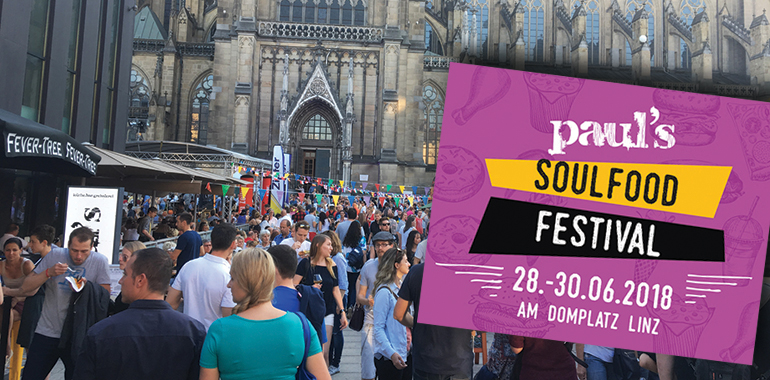 Das Linzer Soulfood-Festival erfindet das Thema Streetfood neu: Von 28. bis 30. Juni erobern 30 Food-Artists den Domplatz. Klassische Burger sind ebenso mit dabei wie der größte Smoker Österreichs und exotische Kulinarik von Nepal bis Afrika. Der absolute Renner: die 30 Meter lange paul‘s Bar mit verschiedenen Bereichen. Krönender Abschluss: die After Show Party in der Stadtliebe auf der Landstraße (Freitag & Samstag).