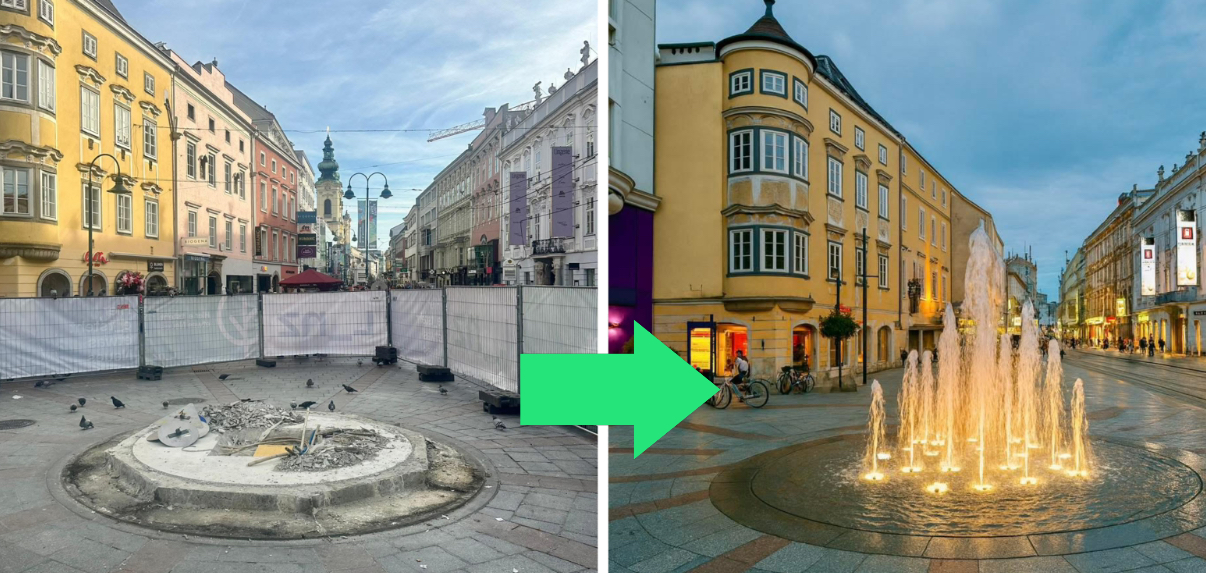 Die Stadt Linz hat die Sparkasse AKTIV gebeten, den Brunnen zurückzunehmen, weil man sich die Betriebskosten nicht mehr leisten kann. Das zeigt, wie dramatisch die finanzielle Lage der Stadt Linz mittlerweile ist.