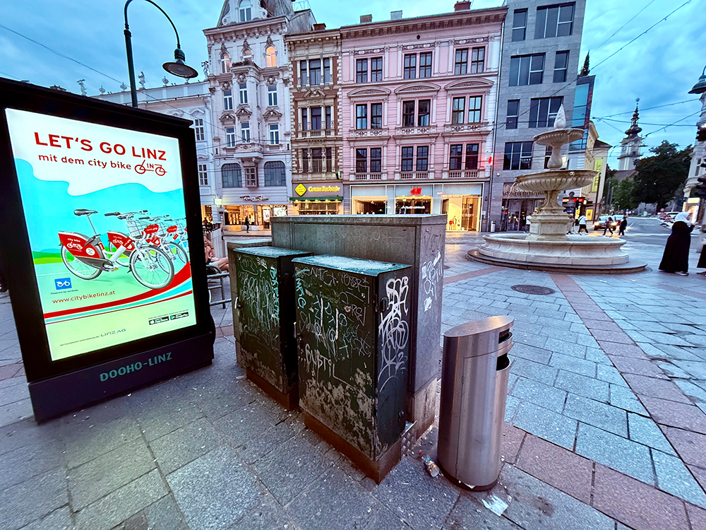 Auf diesem infantil-provinziellen Fridays-for-Future-Niveau weitermachen geht nicht, wenn man es ernst meint und Linz die Landstraße wirklich aufwerten und die Innenstadt attraktiveren will. Das Herumwurschteln muss ein Ende haben. Oder glaubt irgendjemand noch ernsthaft, die Linzer lassen sich mit solchen Placebo-Maßnahmen Sand in die Augen streuen? In diese Kategorie fällt auch die Aussendung der Stadt, derzufolge der Taubenmarkt ja eh „längerfristig insgesamt neugestaltet“ werden soll. „Längerfristig“ bedeutet in Linz irgendwas zwischen 2050 und nie…