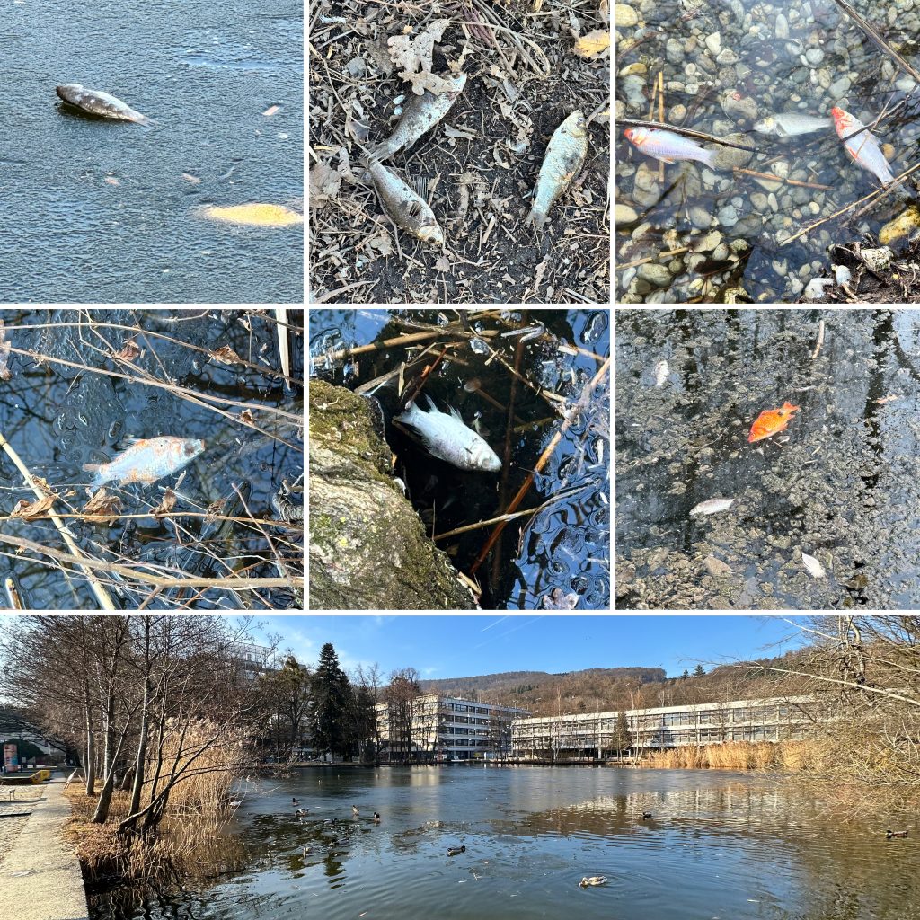 Für die vielen Enten am Uniteich sind die toten Fische jedoch eine willkommene Abwechslung am Speiseplan.