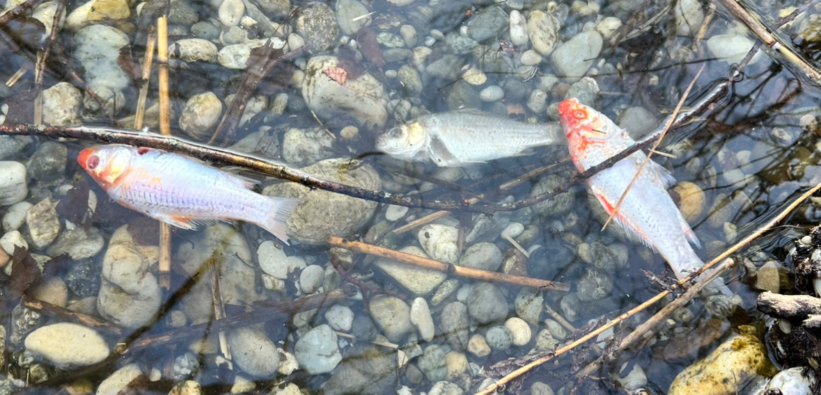 Für die vielen Enten am Uniteich sind die toten Fische jedoch eine willkommene Abwechslung am Speiseplan.
