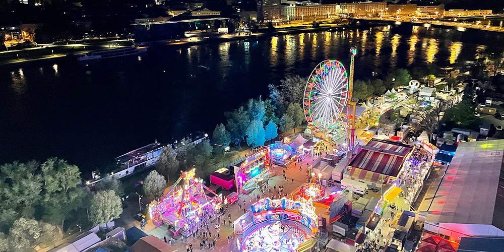 Der Urfahraner Herbstmarkt bietet auf 60.000 Quadratmetern über 280 Stände, darunter 55 Fahrgeschäfte wie die spektakuläre Achterbahn „Feuer & Eis – Alpenblitz“ und heuer erstmals dem „Nightfly“, 100 Verkaufsstände und 40 Gastronomiebetriebe. Es warten regionale Spezialitäten, von herzhaften Schmankerln bis zu süßen Leckereien, das Festzelt „Da Wirt 4s Fest“ mit Live-Musik und jeder Menge Stimmung.