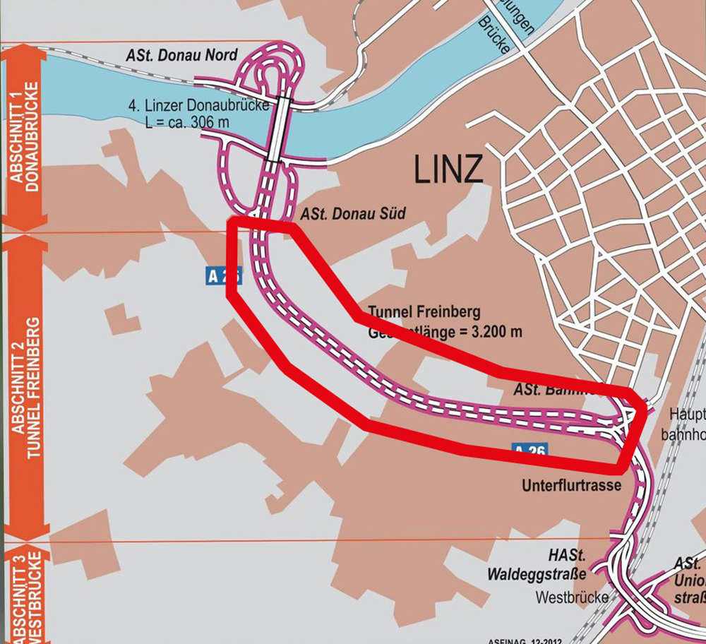 Der 3,2km lange Freinbergtunnel von der Westringbrücke zum Bahnhof ist das Herzstück der Linzer Westring-Autobahn. Ab 2024 soll gebaut werden. Dagegen regt sich Widerstand – wie es aussieht mit Erfolg: Die Initiative „Verkehrswende Jetzt“ dürfte die nötigen 6.100 Unterschriften beisammen haben, um eine Volksbefragung über das Projekt einleiten zu können. Diese soll noch heuer steigen.