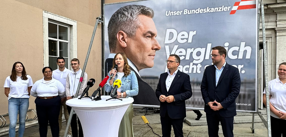 Und weiter: „Man kann wählen zwischen einem Kommunisten und einem Rechtsextremen, Karl Nehammer steht mit beiden Beinen genau in der Mitte. Wir können, wollen und wir werden gewinnen.“ Zu den Umfragewerten, die die FPÖ weiter (wenn auch nur hauchdünn) vorne sehen, sagt Wöginger: „Umfragen sind wie ein Parfum, man soll daran riechen aber nicht davon trinken.“
