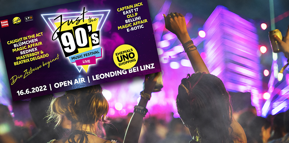Am 16. Juni feiern die wilden 1990er-Jahre ein großartiges Comeback: In der ehemaligen UNO Shopping in Leonding steigt „We love 90ies“ – ein Konzertabend mit einem fetten Line-Up an legendären Bands und Interpreten aus dieser ganz besonderen Zeit. Es gibt noch Tickets – und zusätzlich verlost der LINZA 3×2 Tickets!
