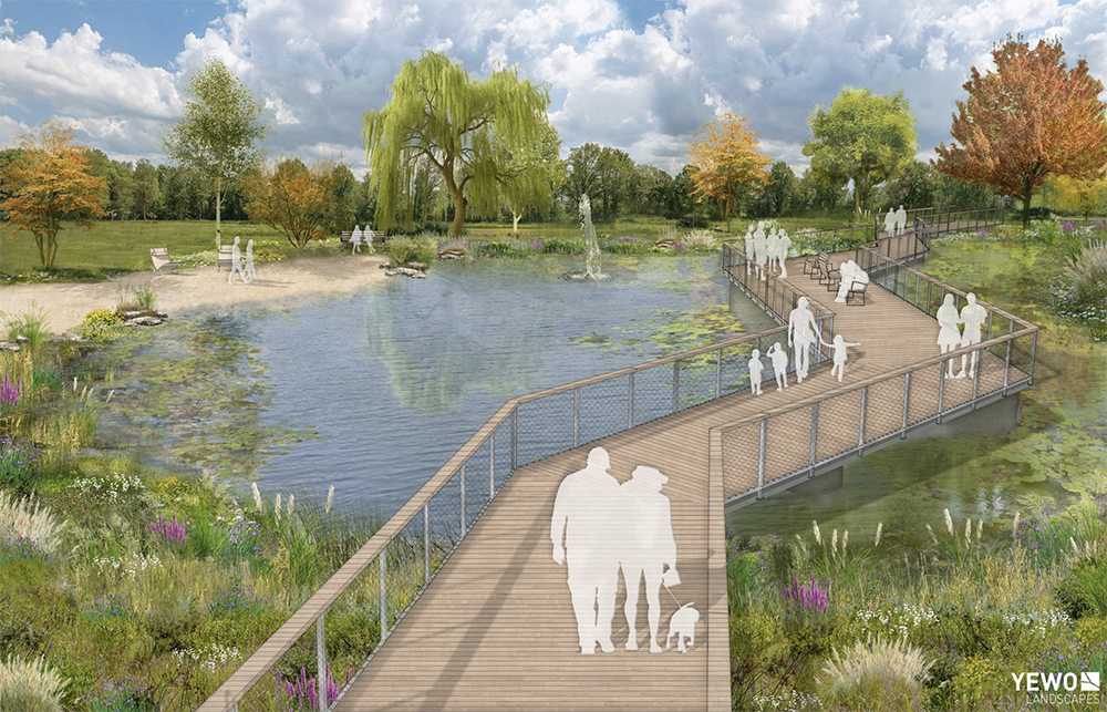 Eine neue Teichanlage samt Steg komplettiert den „Volksgarten Neu“ direkt an der Traun in Wels.
