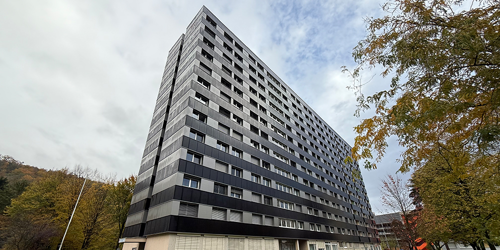Die Sanierung des in die Jahre gekommenen, 13-stöckigen Gebäudes kostete knapp sieben Millionen Euro, in die Fassade flossen etwa fünf Millionen. Durch die neue PV-Anlage (die auf drei Seiten des Baus angebracht wurde) sollen pro Jahr um die 152.000 kWh Sonnenstrom erzeugt werden (das entspricht in etwa dem Jahresverbrauch von 50 Durchschnittshaushalten), was wiederum über 32 Tonnen CO2 einspart. 90 Prozent des erzeugte Stroms werden im Haus selber verbraucht, ein zusätzlich errichteter Speicher ermöglicht eine flexible Nutzung auch in den Nachtstunden oder bei Schlechtwetter.