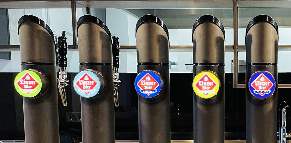 Herzstück des Lokals sind die hier gebrauten Linzer Biere, von denen es mehrere gibt: das original Linzer Bier, das unfiltrierte Linzer Zwickl, das hopfenbetonte Linzer Pale Ale und als Krönung das Linzer Edelstahl – ein Willkommens-Geschenk an Linz als Stahlstadt.